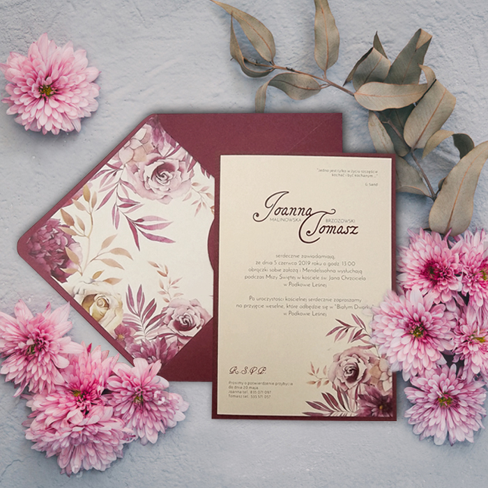 KOPERTA: Do zaproszenia dodawana jest gratis ozdobna koperta o gramaturze 150 g/m2.