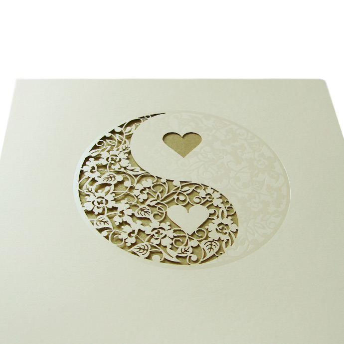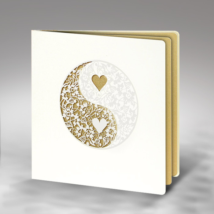 Zaproszenie ślubne z najnowszej kolekcji wykonane z perłowego papieru w kolorze ecru. Okładkę ozdabia wycięcie laserowe oraz perłowa folia. Wkładka do nadruku w kolorze złotym. Zaproszenie wysyłamy w formie gotowej do wręczenia. Zaproszenie wykonane z ogromną starannością i dbałością o detale. Precyzyjny nadruk, dokładność wykonania oraz wysokiej jakości papier.