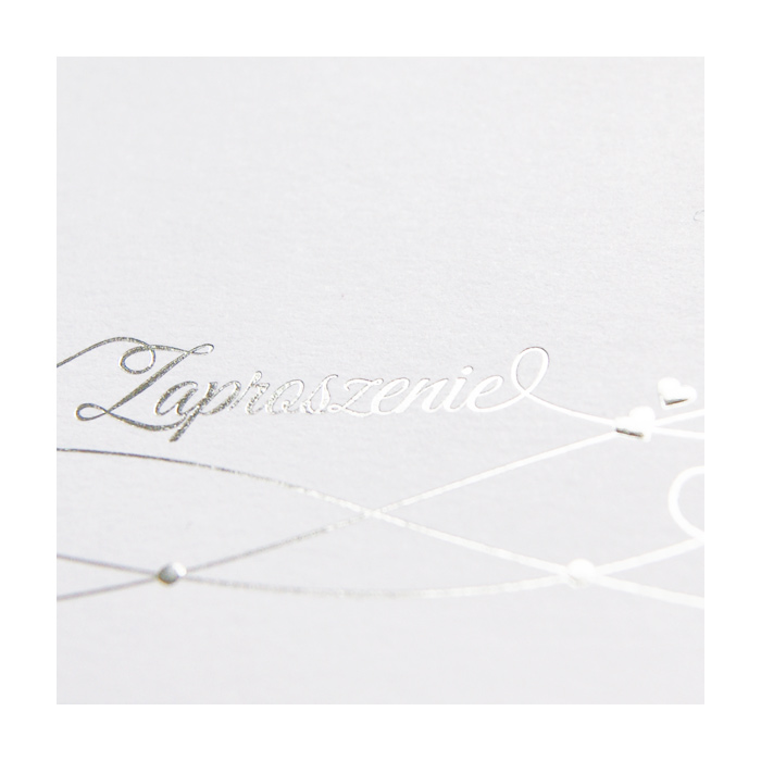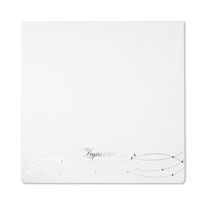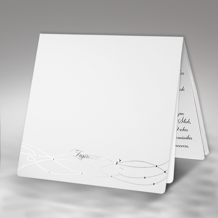 Eleganckie zaproszenie ślubne z najnowszej kolekcji wykonane z perłowego papieru w kolorze białym. Na okładce wytłoczony został delikatny wzorek. Niektóre elementy dodatkowo wysrebrzono. Dodatkową ozdobą jest kryształek znajdujący się pośrodku zaproszenia. Na okładce drukowane są imiona Młodej Pary oraz data ślubu. Wkładka do nadruku tekstu biała, matowa. Zaproszenie wysyłamy w formie gotowej do wręczenia. Zaproszenie wykonane z ogromną starannością i dbałością o detale. Precyzyjny nadruk, dokładność wykonania oraz wysokiej jakości papier.