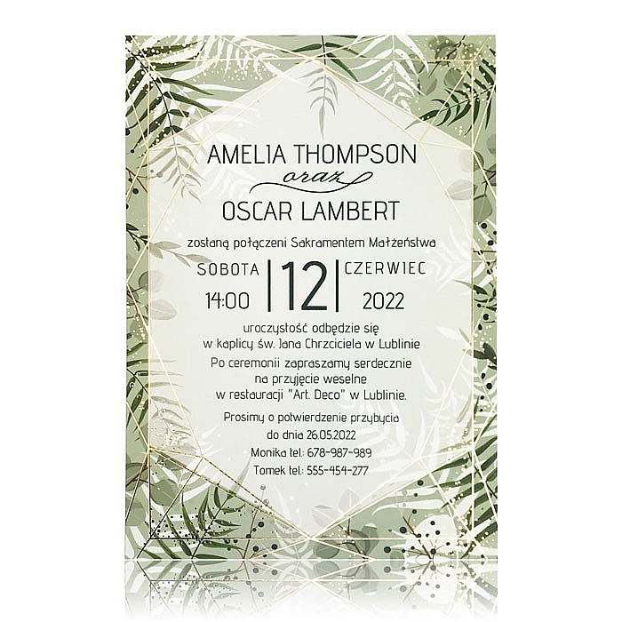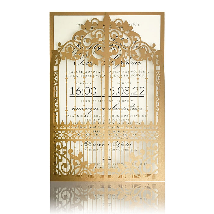 Zaproszenie ślubne wykonane z wysokiej jakości ekologicznego papieru. Okładkę zdobi wytłoczone i wycięte laserowo drzewo z subtelnym uszlachetnieniem w postaci złocenia. Wkładka do nadruku wykonana z wysokiej jakości matowego papieru w kolorze ecru. Zaproszenie wysyłamy w formie gotowej do wręczenia. Zaproszenie wykonane z ogromną starannością i dbałością o detale. Precyzyjny nadruk, dokładność wykonania
