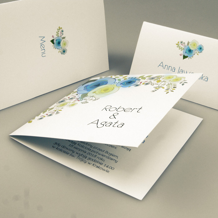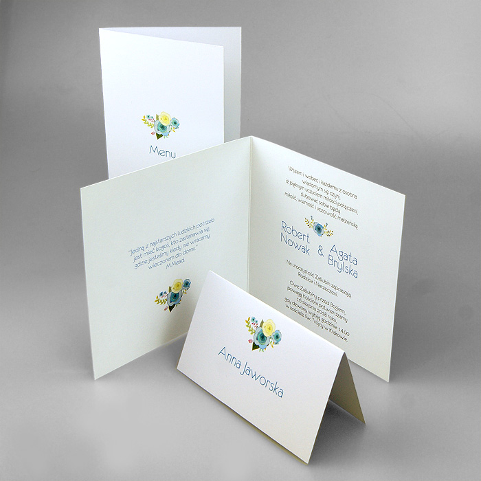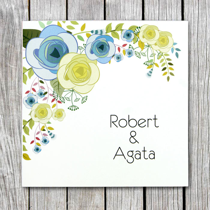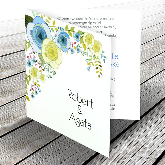 Zaproszenie z najnowszej kolekcji wykonane z papieru kredowego 350g. Okładkę ozdabia barwny motyw kwiatowy. Zaproszenie wysyłamy w formie gotowej do wręczenia. Wykonane z ogromną starannością i dbałością o detale. Precyzyjny nadruk, dokładność wykonania oraz wysokiej jakości papier.