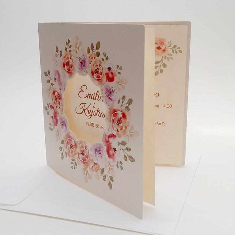 Zaproszenie ślubne wykonane z wysokiej jakości matowego papieru, delikatnie fakturowanego. Okładkę zdobi wytłoczone i wycięte laserowo serce, otoczone ażurowym motywem kwiatowym.Okładka z subtelnym uszlachetnieniem w postaci złocenia. Wkładka do nadruku wykonana z wysokiej jakości metalizowanego papieru w kolorze ecru. Zaproszenie wysyłamy w formie gotowej do wręczenia. Zaproszenie wykonane z ogromną starannością i dbałością o detale. Precyzyjny nadruk, dokładność wykonania