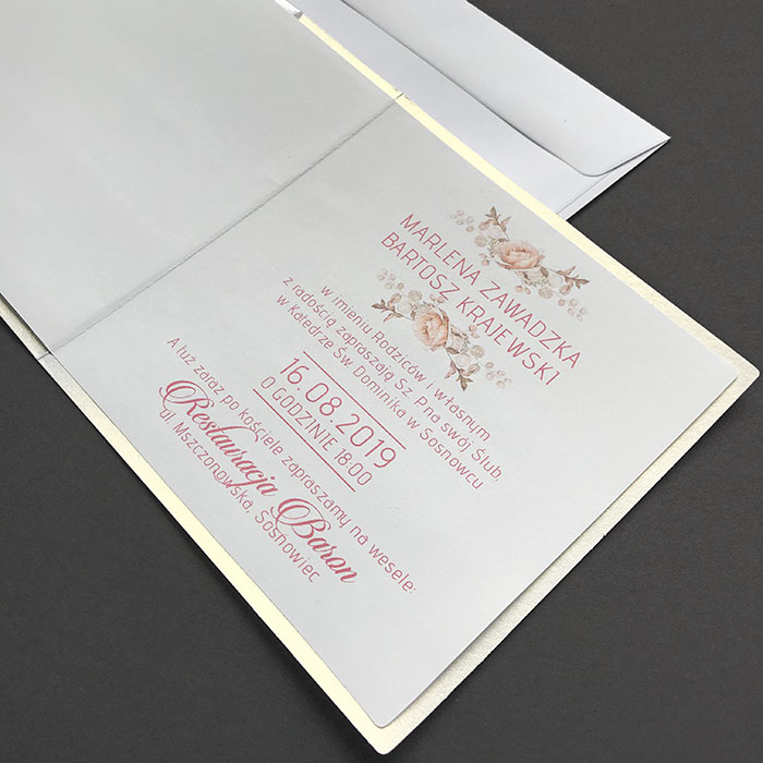 KOPERTA: Do zaproszenia dodawana jest gratis ozdobna koperta o gramaturze 120 g/m2.