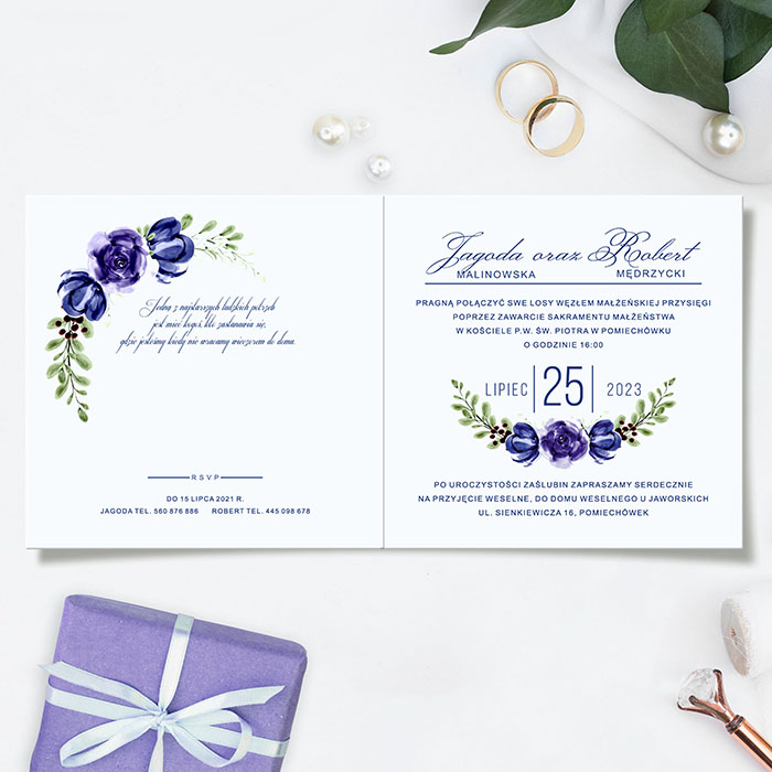 Zaproszenie z limitowanej serii wykonane z niepowlekanego, bezdrzewnego papieru klasy premium z wysokim współczynnikiem białości zapewniający doskonały kontrast dla tekstów i grafiki. Wysokiej jakości druk cyfrowy nie jest uszlachetniony złoceniem. W tym zaproszeniu nie ma możliwości zmiany układu graficznego oraz kolorystyki zaproszenia. Zaproszenie składa się ze sztywnej kartki, zadrukowanej dwustronnie. Zaproszenie wysyłamy w formie gotowej do wręczenia. Zaproszenie wykonane z ogromną starannością i dbałością o detale. Precyzyjny nadruk, dokładność wykonania oraz wysokiej jakości papier. Minimalna ilość zamówienia tego wzoru to 25szt.