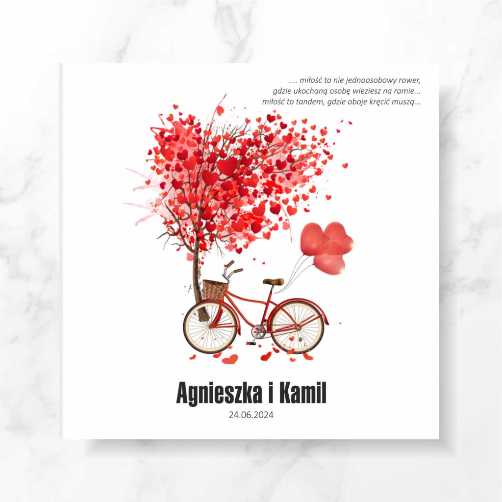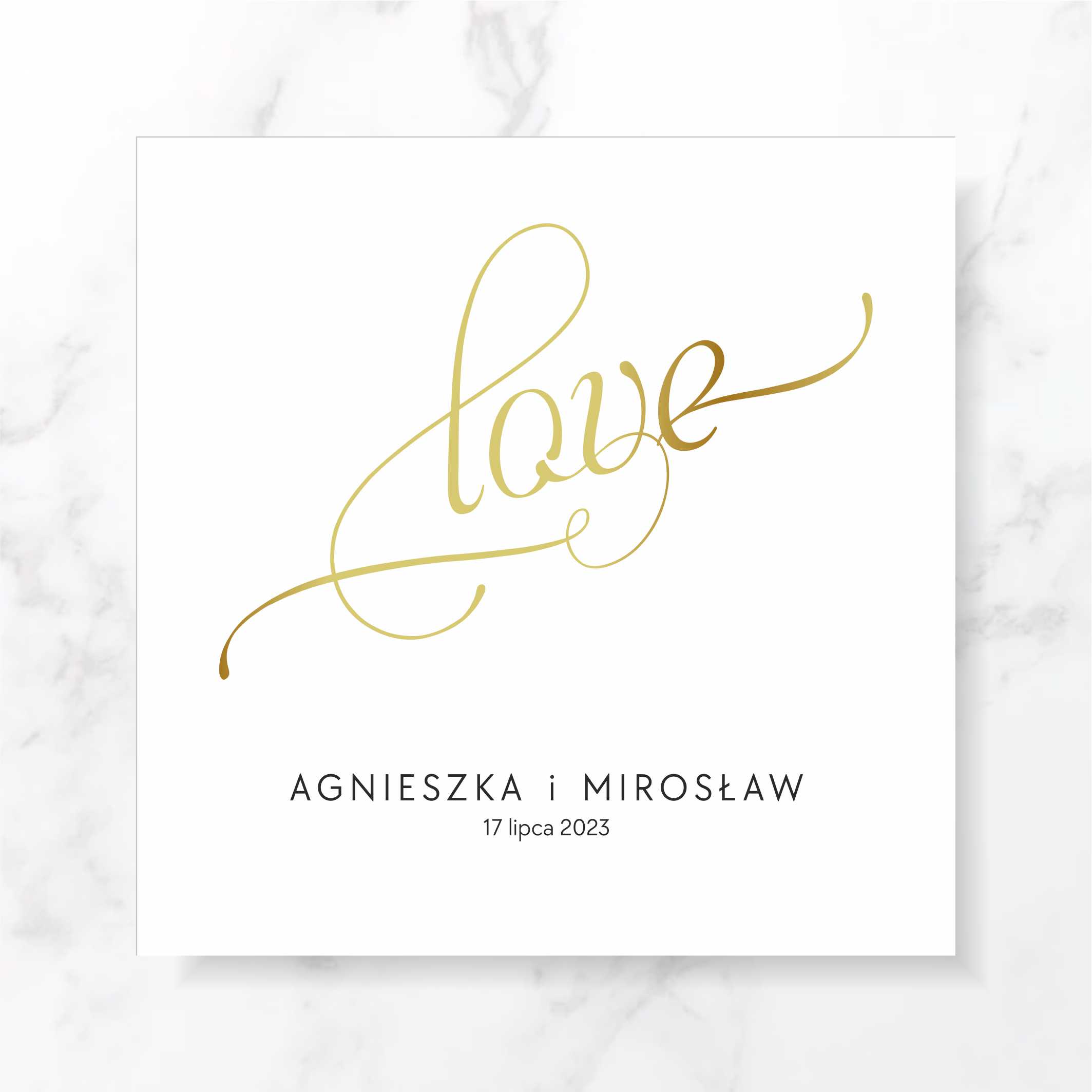 Kwadratowe, jednokartkowe, składane zaproszenie ślubne.