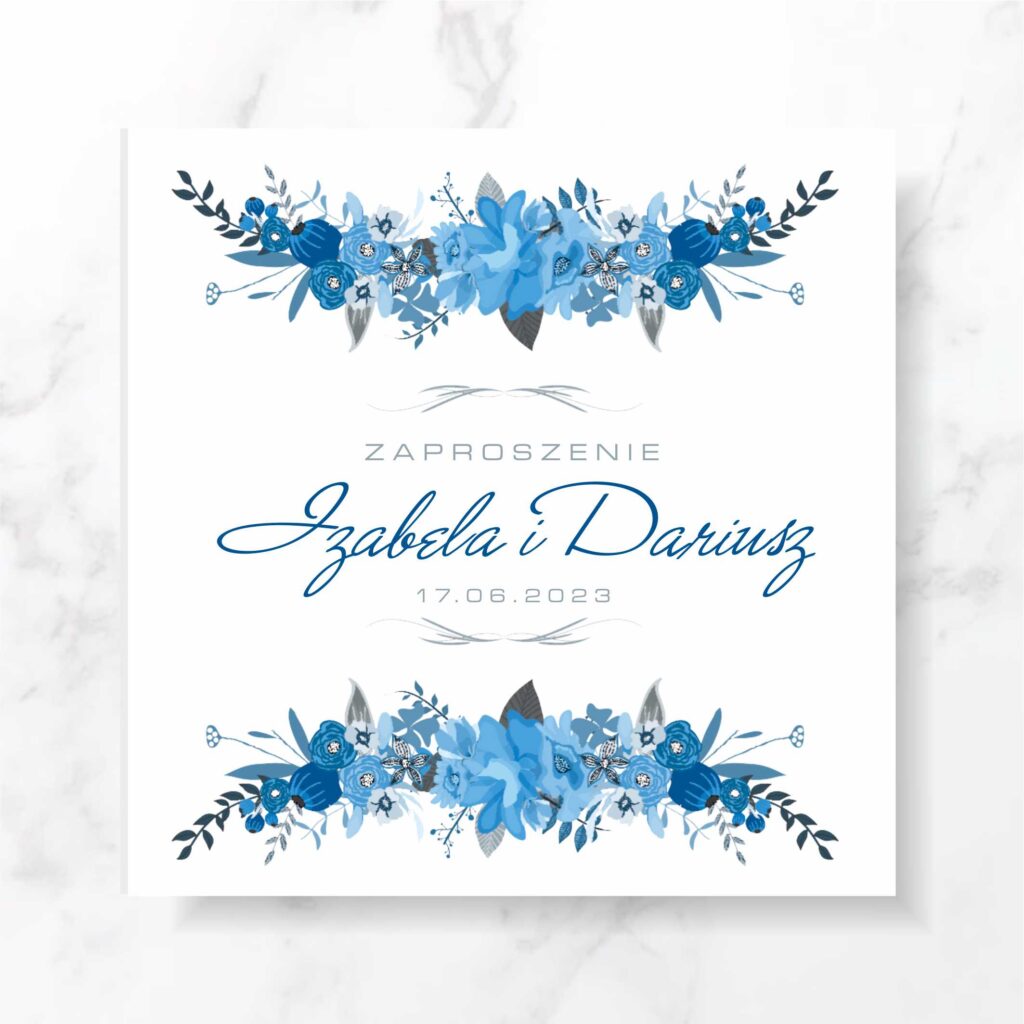Zaproszenie składa się ze sztywnej kartki, zadrukowanej dwustronnie. Zaproszenie wysyłamy w formie gotowej do wręczenia. Zaproszenie wykonane z ogromną starannością i dbałością o detale. Precyzyjny nadruk, dokładność wykonania oraz wysokiej jakości papier. Minimalna ilość zamówienia tego wzoru to 25szt.