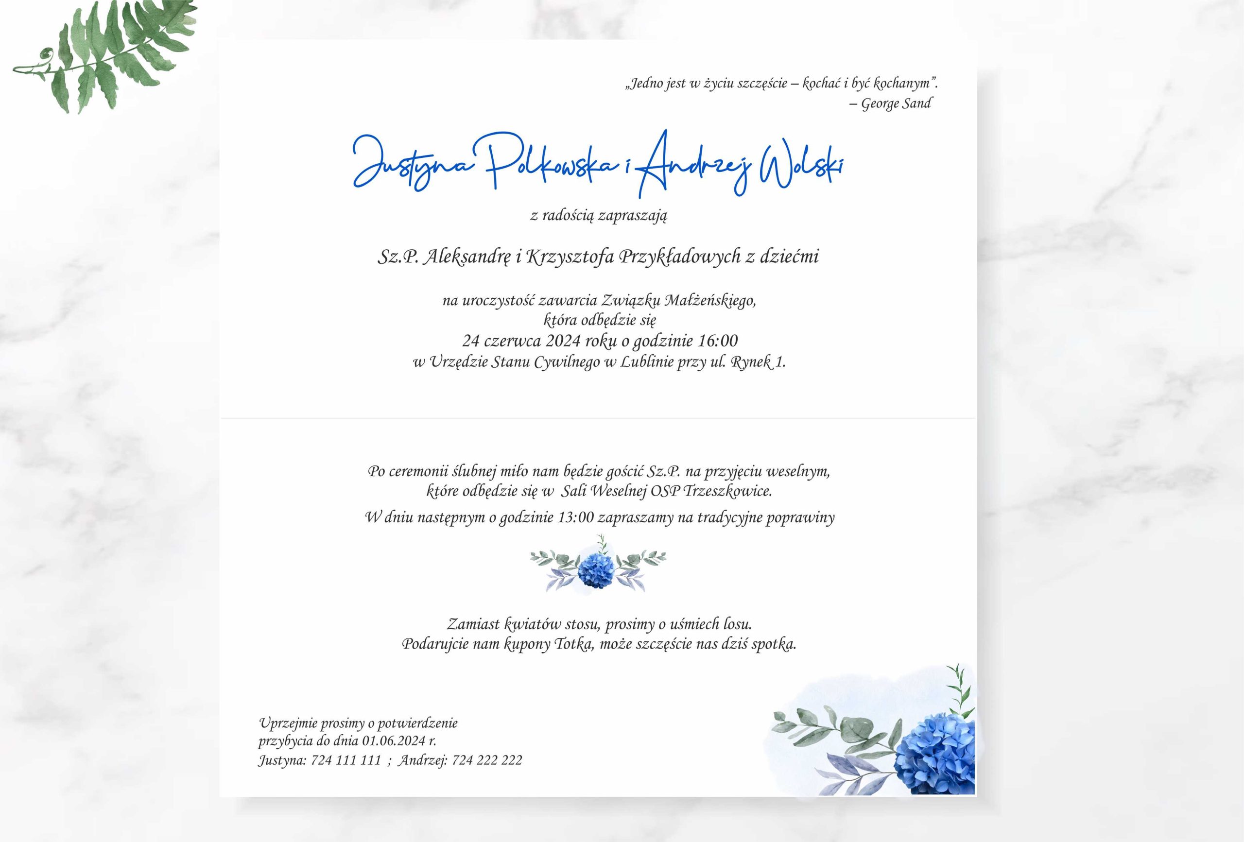 Zaproszenia drukujemy i przygotowujemy z największą starannością w ciągu 3–4 dni roboczych.